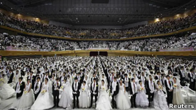 La Iglesia de la Unificación es conocida mundialmente por sus bodas multitudinarias, donde miles de parejas se casan simultáneamente como símbolo de “pureza de linaje”. Su doctrina se basa en el Principio Divino, que interpreta la Biblia desde una visión restauracionista y considera a Moon como el “Padre Verdadero”.