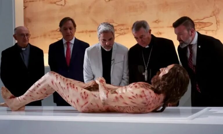 Con un peso de 75 kilos, una altura de 1.78 metros, y en una posición de rigor mortis, se muestra una supuesta figura de Cristo.