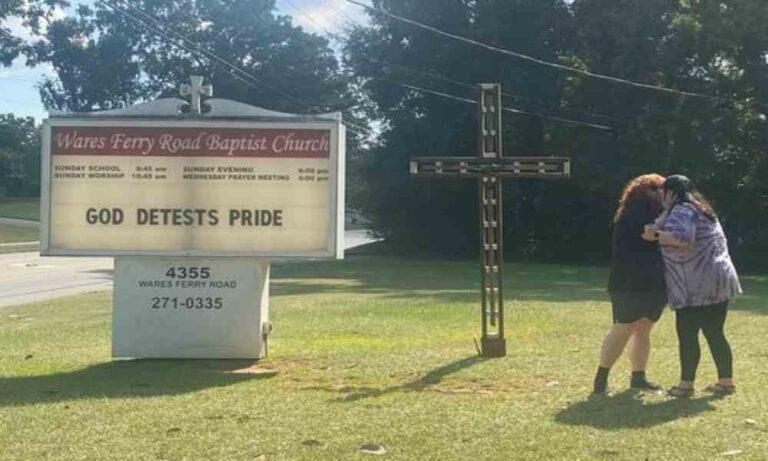 El letrero decía «Dios detesta el orgullo», una referencia a algunos versículos de la Biblia como Proverbios 8:13 y Proverbios 16:18.