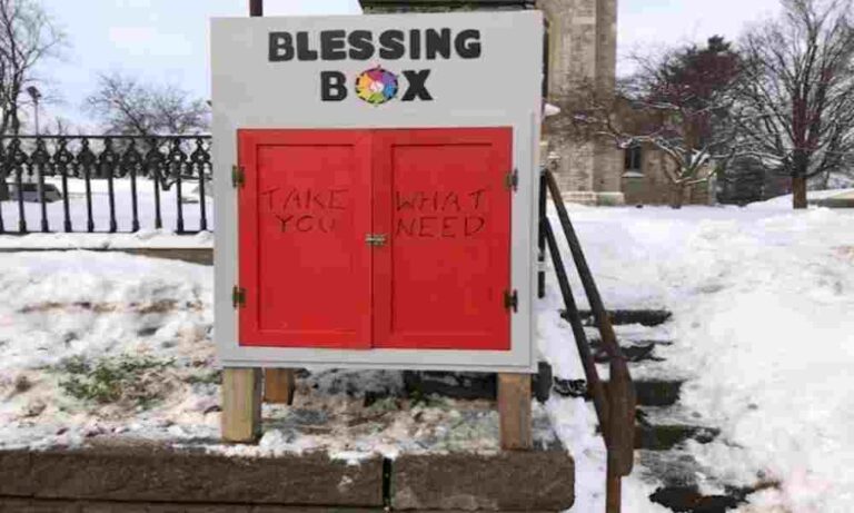 La caja está instalada en las afueras del templo St. James Batavia de Nueva York