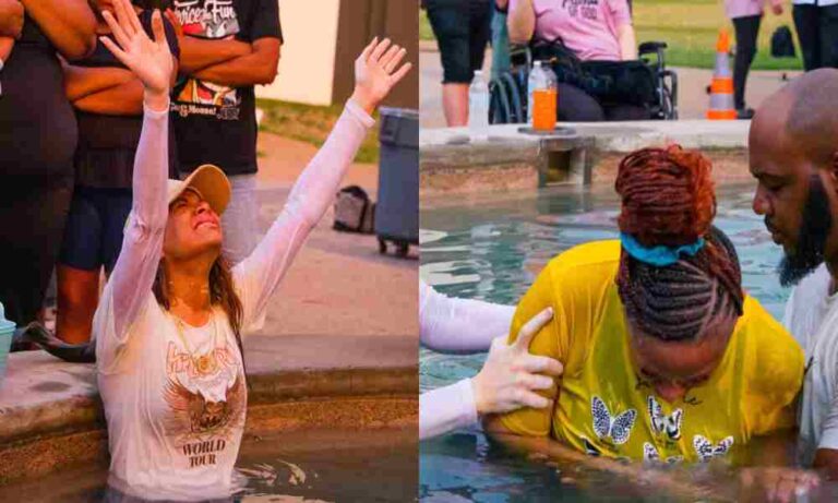 Cientos de creyentes se bautizan en la fuente de una iglesia en Texas